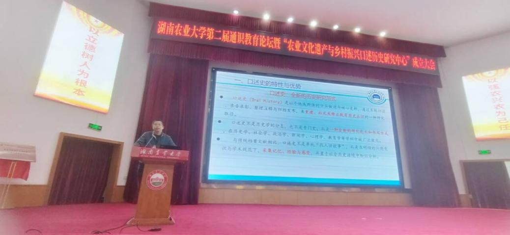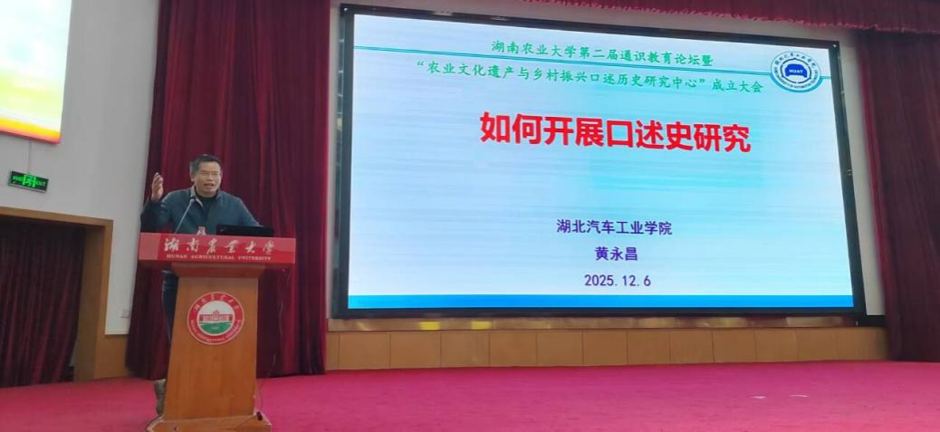 12月6日,由湖南农业大学主办的湖南农业大学通识教育论坛暨“农业文化遗产与乡村振兴口述历史研究中心”成立大会在湖南农业大学举行。来自中国农业大学、中联口述历史整理研究中心、中南大学、南京农业大学、怀化学院、铜仁学院、中共洪江市委党校等多所高校和科研机构的100余名专家学者与会。我校英国365集团公司院长黄永昌教授应邀参加了本次论坛,并作了主题报告。