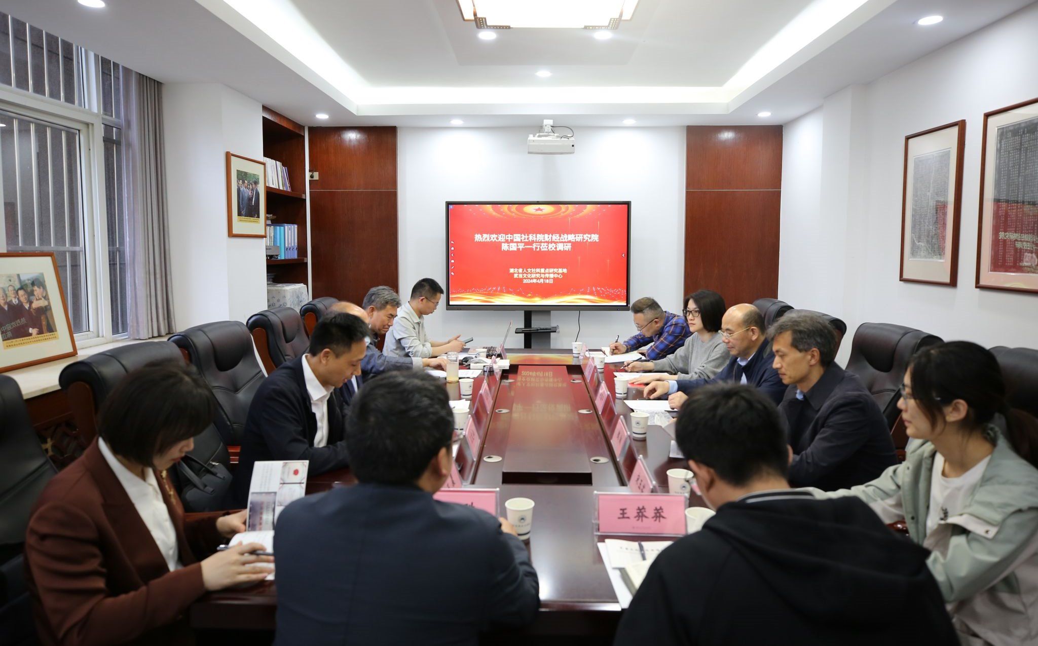 本网讯(文 王莽莽/图 李一凡)4月18日下午,中国社会科学院财经战略研究院党委书记、副院长陈国平一行莅校,就深化“两个结合”与提升新质生产力工作情况开展专题调研,调研座谈会在武当文化传播与研究中心举行。副校长张友兵,党委常委、党政办公室主任王文山陪同调研。