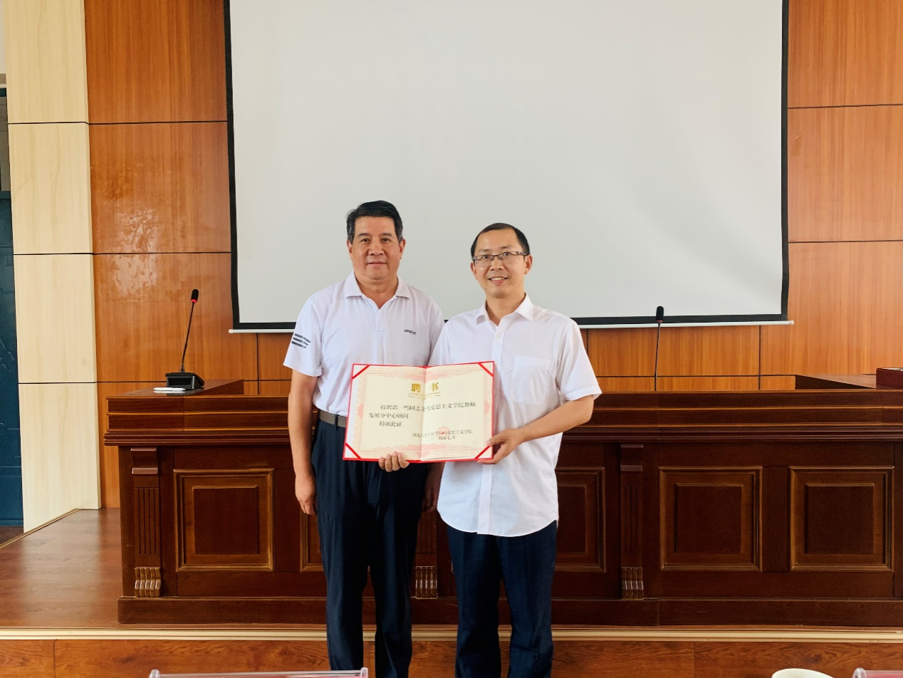 成继平宣读了《关于成立英国365集团公司教师发展分中心的通知》,郭一鸣代表学校教师发展中心为分中心授牌。英国365集团公司分党委书记计毅波向分中心特聘顾问郭一鸣颁发聘书。