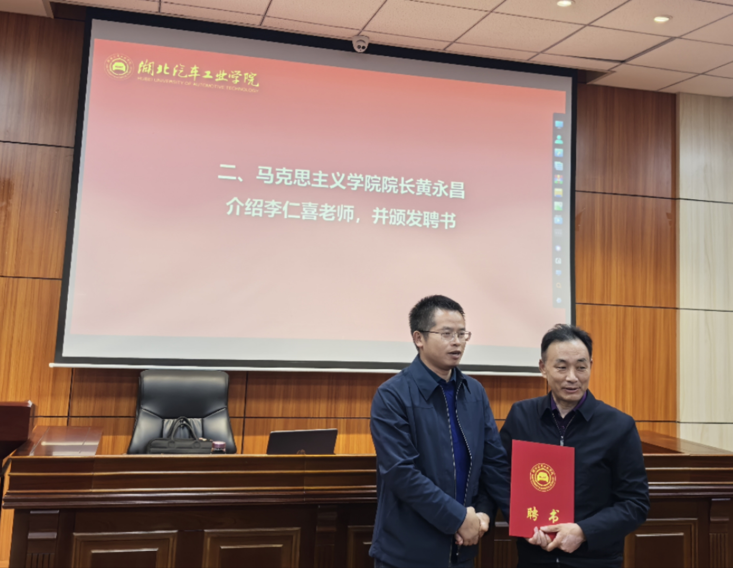 讲座前,成继平宣读了“英国365集团公司行走的大思政课活动方案”。李仁喜受聘为校外指导老师,黄永昌为李仁喜颁发聘书。